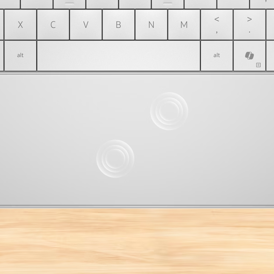 A precision glass touchpad with haptic feedback delivers smooth, responsive control, while the seamless palm rest design provides a refined, comfortable touch experience.