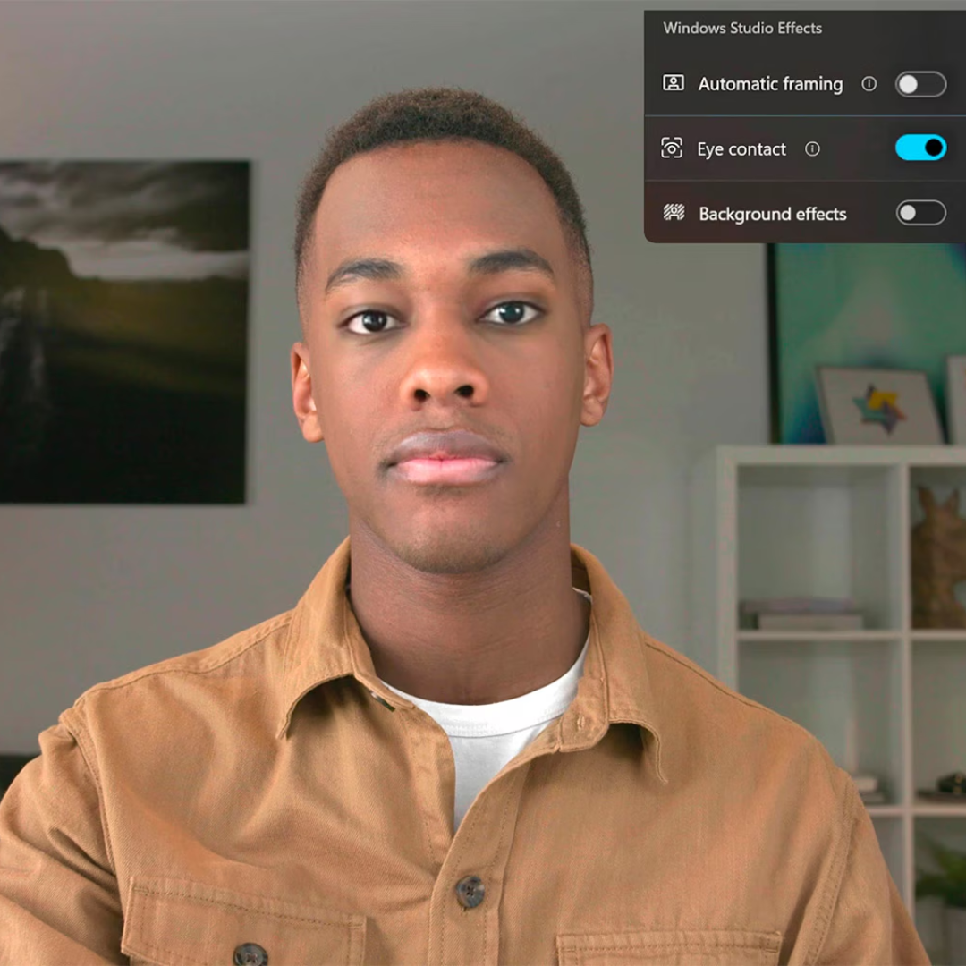 Stay naturally connected on every video call. Intelligent camera technology automatically adjusts your gaze to simulate direct eye contact, keeping you focused and engaging while delivering crystal-clear 1080p video.